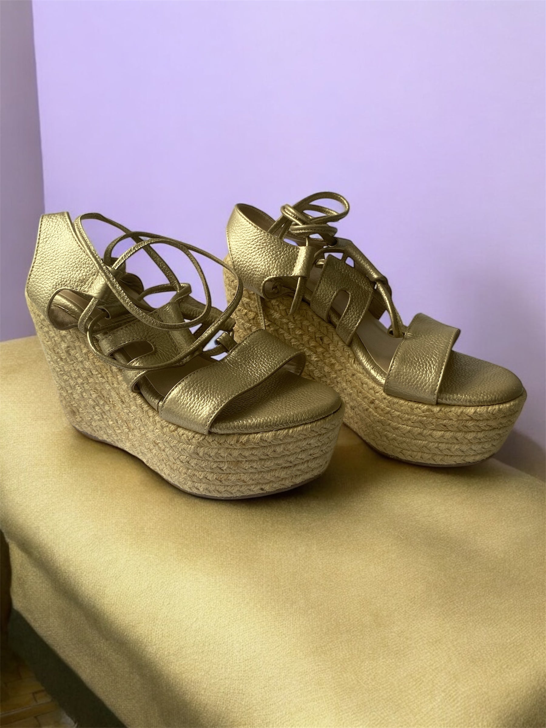 Las Plataforma Brillo Seguro son el equilibrio ideal entre altura, estilo y comodidad. Su acabado dorado metalizado realza cualquier look, mientras que la plataforma forrada en yute aporta frescura y estabilidad. Perfectas para brillar en reuniones, salidas casuales o noches especiales.